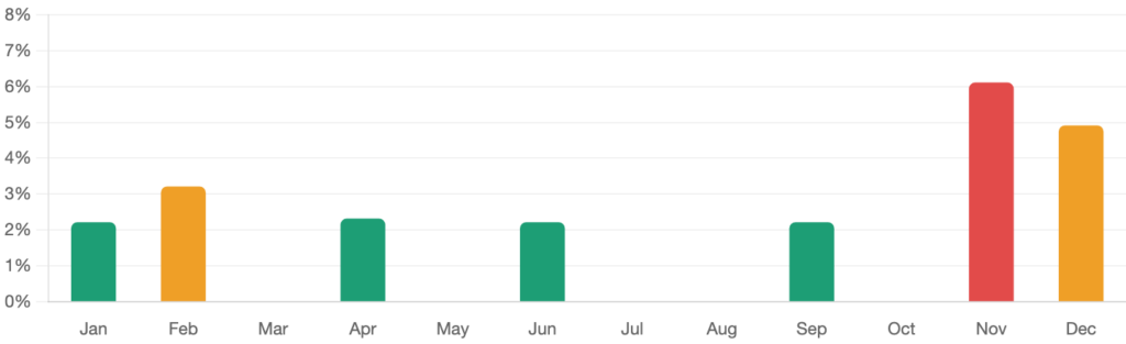 Model Q4 P&L at 6% November returns and 5% December returns, not 3% annual average.