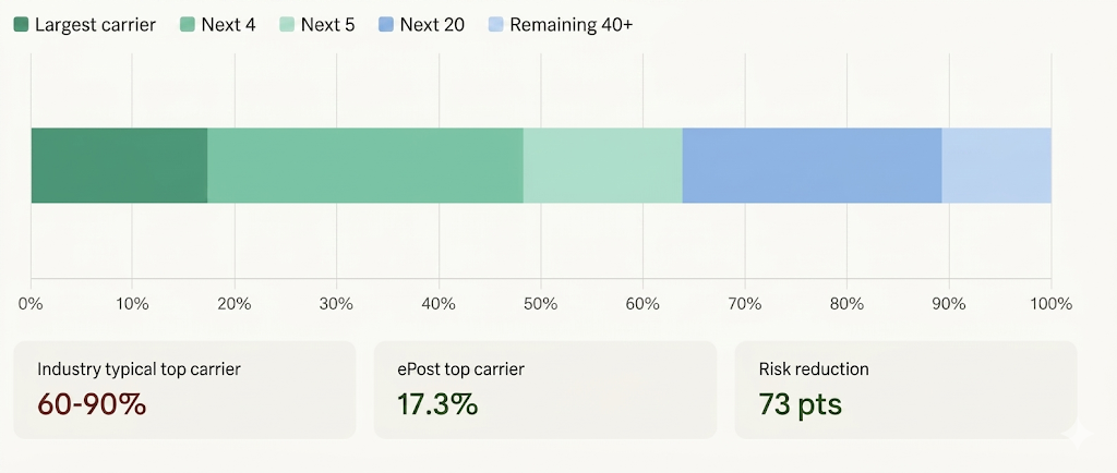 Exhibit 3: Concentration below 20% per carrier eliminates single-point-of-failure risk